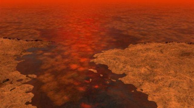 Την ίδια ώρα ερευνητές, με επικεφαλής τον Ράντι Κερκ της Αμερικανικής Γεωλογικής Υπηρεσίας, που ανέλυσαν τα στοιχεία που συγκέντρωσε το διαστημόπλοιο Κασίνι που μετά από επτά χρόνια πορείας έφτασε πέρσι στον δορυφόρο του Κρόνου, Τιτάνα και τον μελετά βρήκα μία θάλασσα- υδρογονανθράκων με βάθος 160-170 μέτρων που περιέχει περίπου 9.000 κυβικά χιλιόμετρα υγροποιημένου φυσικού αερίου.