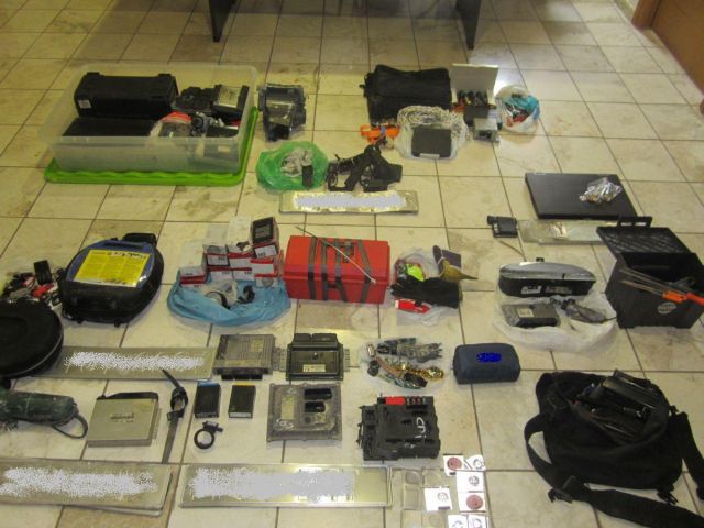 • μεγάλος αριθμός πινακίδων κυκλοφορίας, εκ των οποίων ορισμένες διακριβώθηκε ότι ανήκουν σε κλεμμένα οχήματα, ενώ για τις υπόλοιπες ερευνάται η γνησιότητά τους,