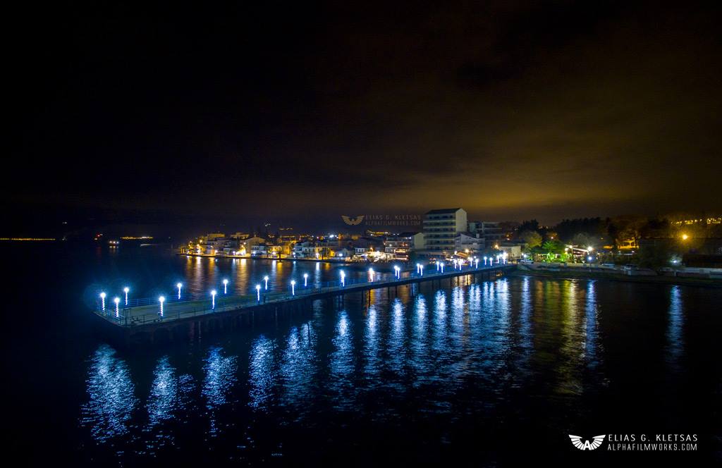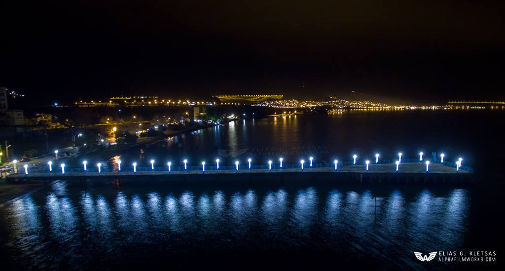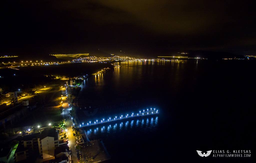 Τα χιλιάδες λαμπιόνια στις κολόνες κατά μήκος της γέφυρας, που μέσα στη νύχτα φαίνεται να προχωρούν μέσα στη θάλασσα, κάνουν το τοπίο μαγευτικό και άκρως Χριστουγεννιάτικο.