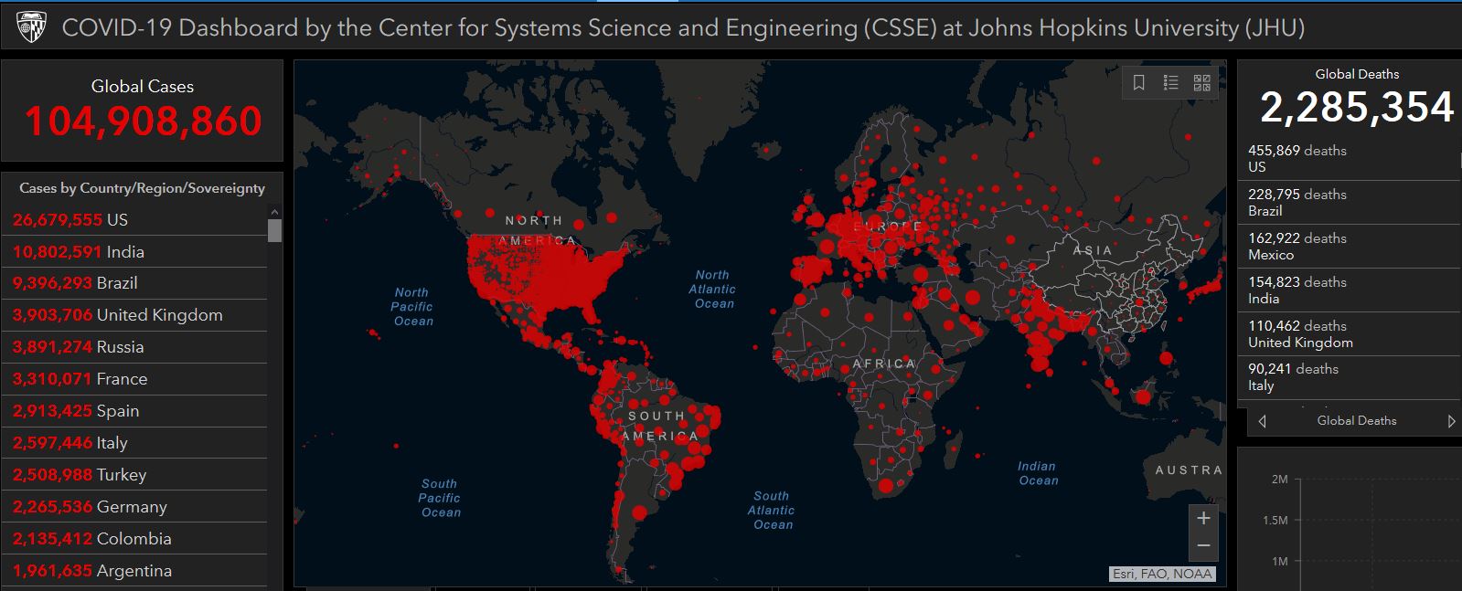 • Τα κρούσματα σε παγκόσμιο επίπεδο ανέρχονται σε 96.868.849 και οι νεκροί σε 2.074.886