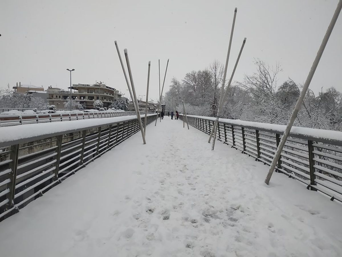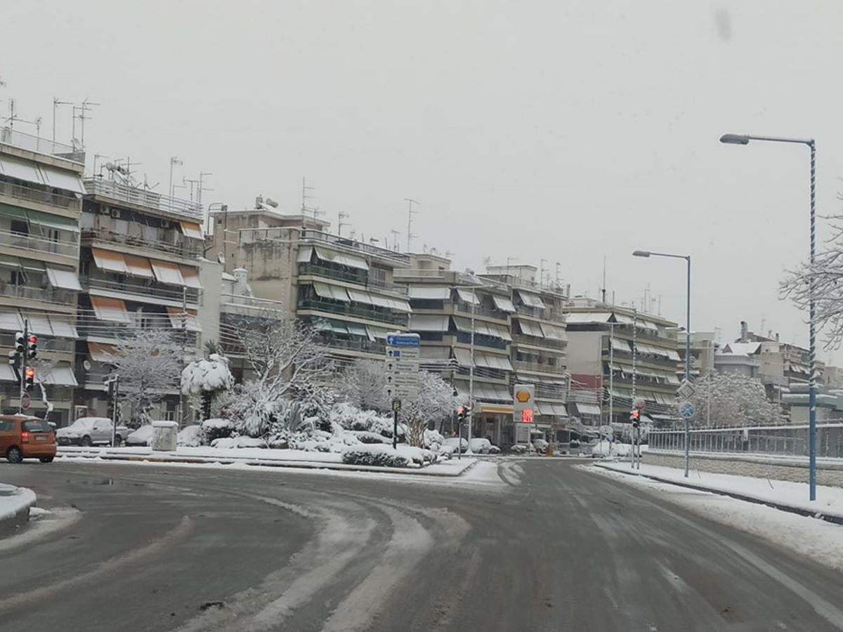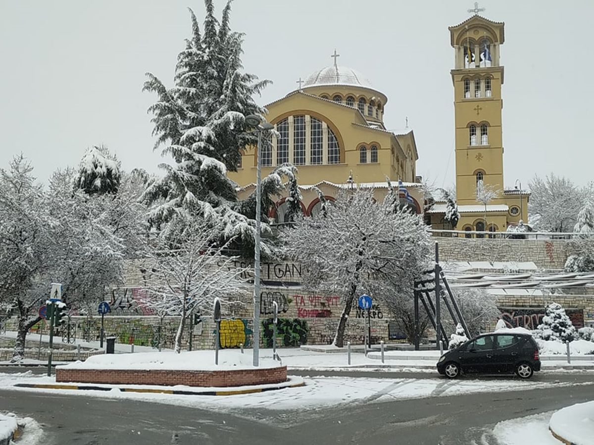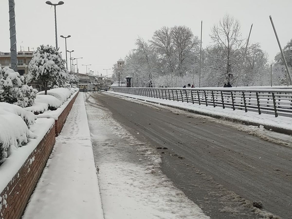 Κάτασπρη και παγωμένη η Λάρισα το πρωί της Κυριακής.