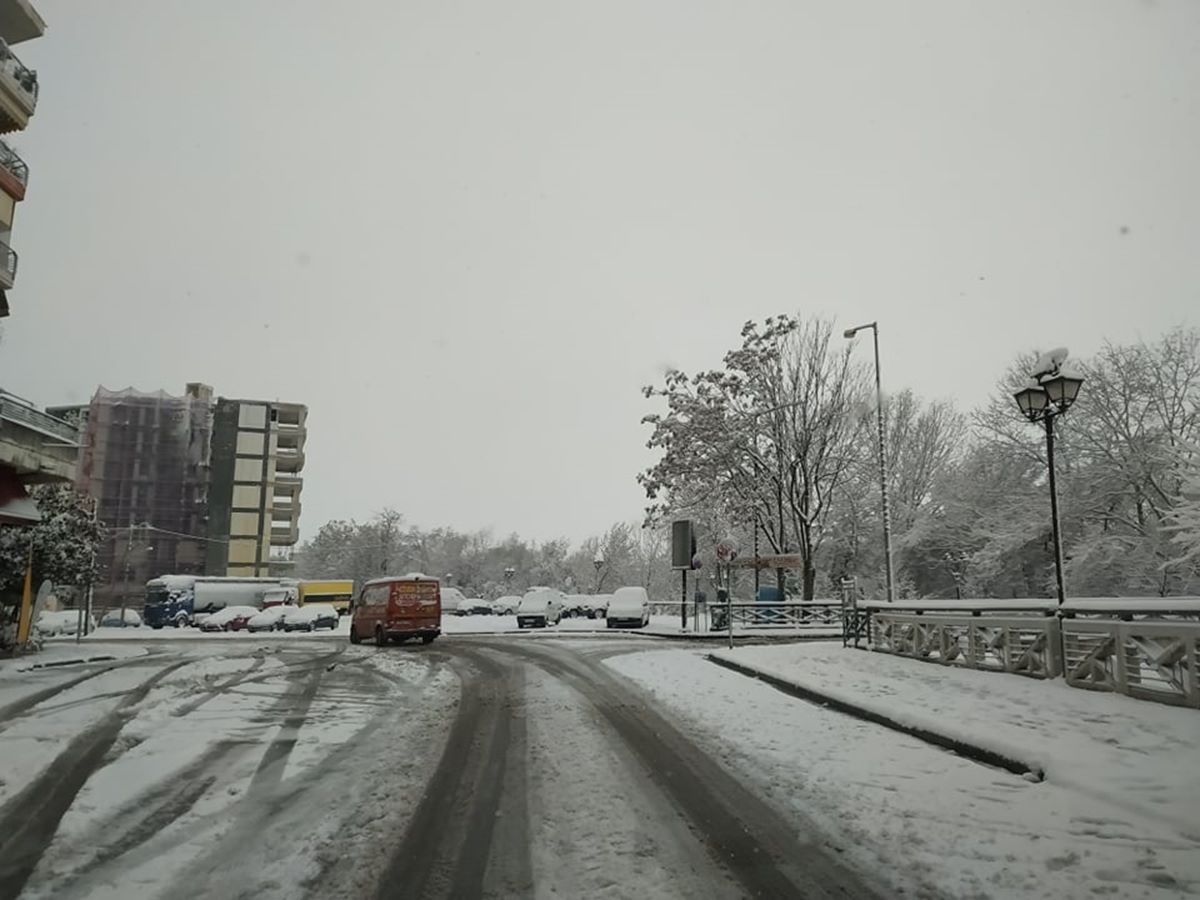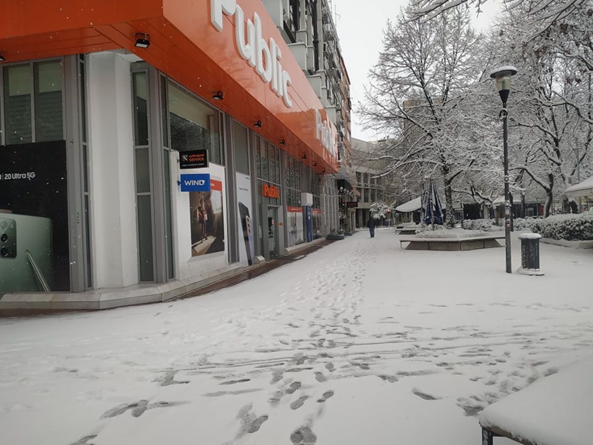 Η πυκνή χιονόπτωση που σημειώθηκε κατά τη διάρκεια της νύχτας είχε ως αποτέλεσμα να "ντυθει" στα λευκά ακόμα και το κέντρο της πόλης.