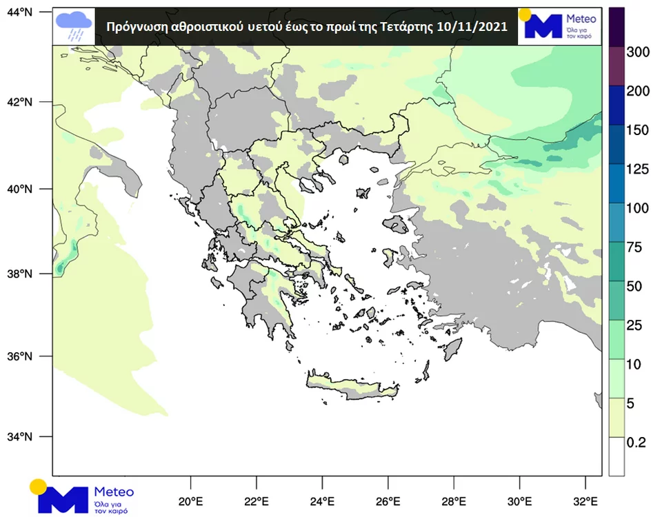 Τοπικές βροχές θα σημειωθούν από τις βραδινές ώρες της Τρίτης 9/11 έως το πρωί της Τετάρτης 10/11, κατά κύριο λόγο στα βόρεια, ανατολικά και νοτιοανατολικά ηπειρωτικά και στα βόρεια της Κρήτης.