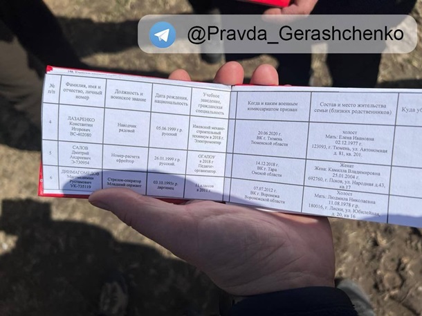 22:19 Στην Μπούχα, η αστυνομία βρήκε 20 κάρτες με προσωπικά δεδομένα Ρώσων στρατιωτών, είπε ο Άντον Γκεραστσένκο.