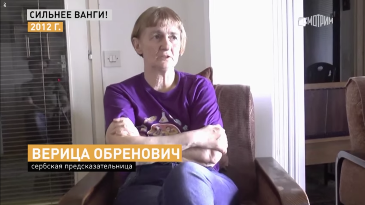 Χθες στο κανάλι "Russia 1" υπήρχε μια εκπομπή για τη "Σέρβα Βάνγκα" Βέρικα Ομπρένοβιτς. Εκεί θυμήθηκαν τις προηγούμενες ακριβείς προβλέψεις της και έδωσαν σημασία σε νέες προβλέψεις.