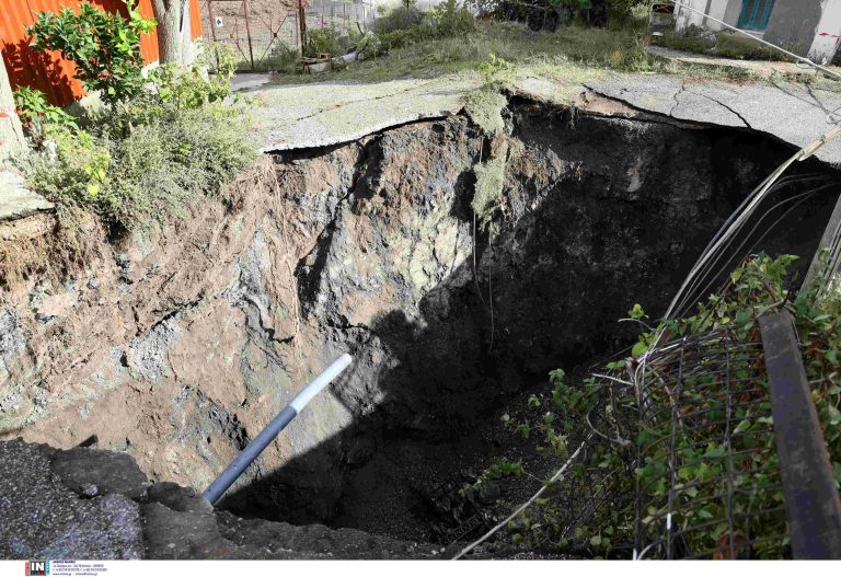 Μόλις ξημέρωσε φάνηκε η κατολίσθηση του εδάφους ανάμεσα στα σπίτια.