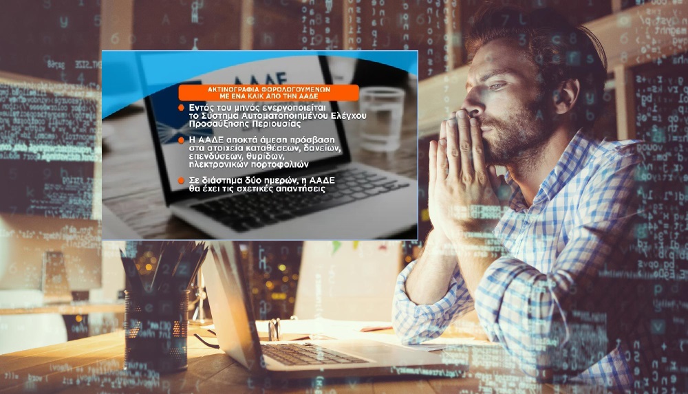Όπως διαβάσατε στο ΕΛ, παράλληλα με την σταδιακή εξαφάνιση του φυσικού χρήματος από την αγορά, στην ΑΑΔΕ ενεργοποιούν ένα ειδικό λογισμικό εν ονόματι «Σύστημα Αυτοματοποιημένου Ελέγχου Προσαύξησης Περιουσίας».