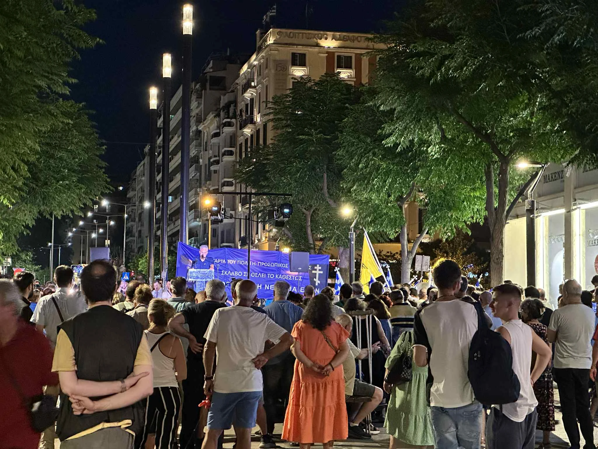Με ελληνικές σημαίες και χριστιανικές εικόνες διαδηλωτές εξέφρασαν το απόγευμα της Κυριακής κάτω από τον Λευκό Πύργο στη Θεσσαλονίκη την αντίθεσή τους στη θέσπιση του προσωπικού αριθμού.