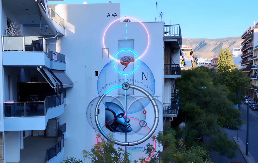 Κάποιες καλαίσθητες, από τη μία φουτουριστικές κι από την άλλη «κλασικές», τοιχογραφίες, ξεπηδούν ολοένα και πιο συχνά σε διάφορα κτήρια της Αθήνας - αλλά και όχι μόνο. Οι τοιχογραφίες συνήθως καλύπτουν την πρόσοψη ολόκληρων κτιρίων και μεταξύ των σχηματισμών, των μορφών και των αριθμών -όλα έχουν νόημα, η τελευταία λεπτομέρεια της διάταξης και των συμβόλων- κάπου αχνοφαίνεται η υπογραφή του καλλιτέχνη - AIVA.