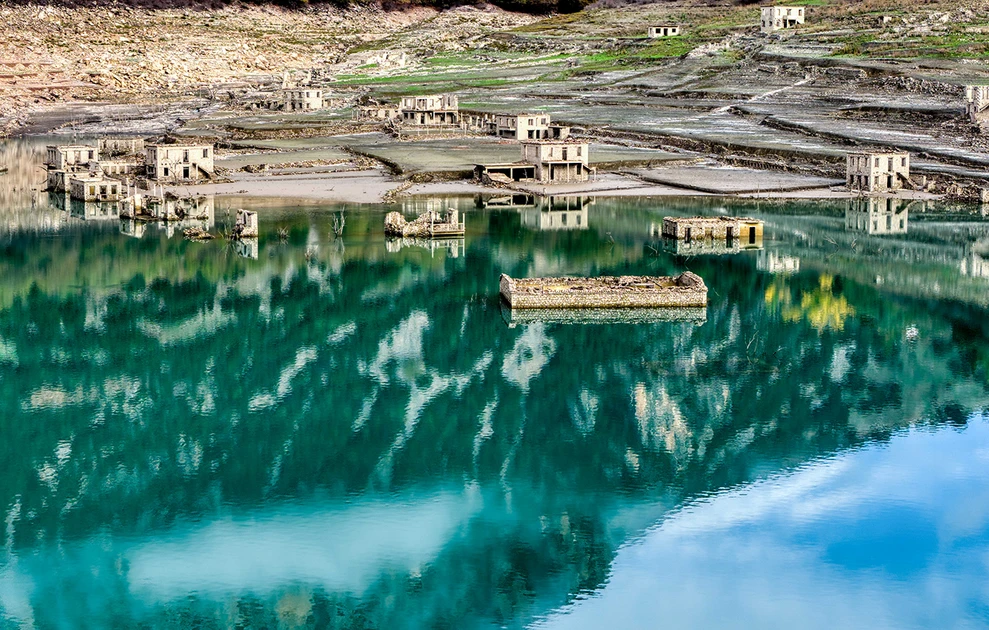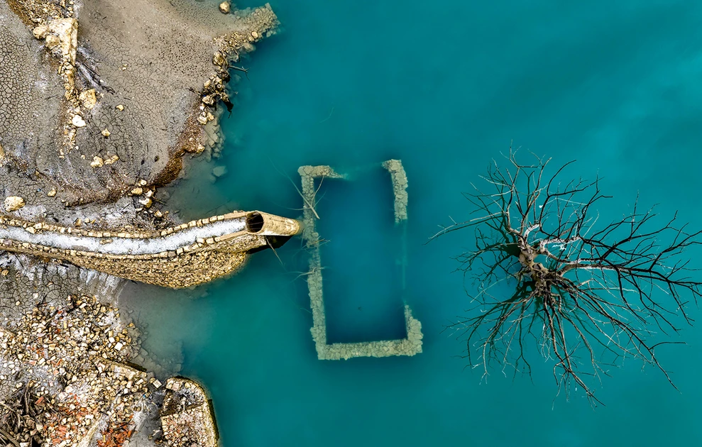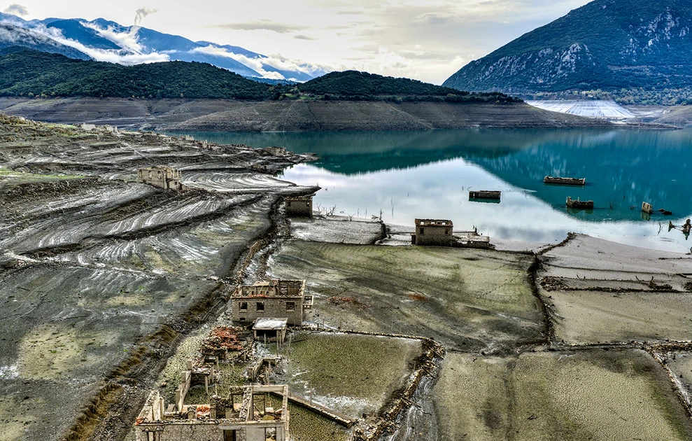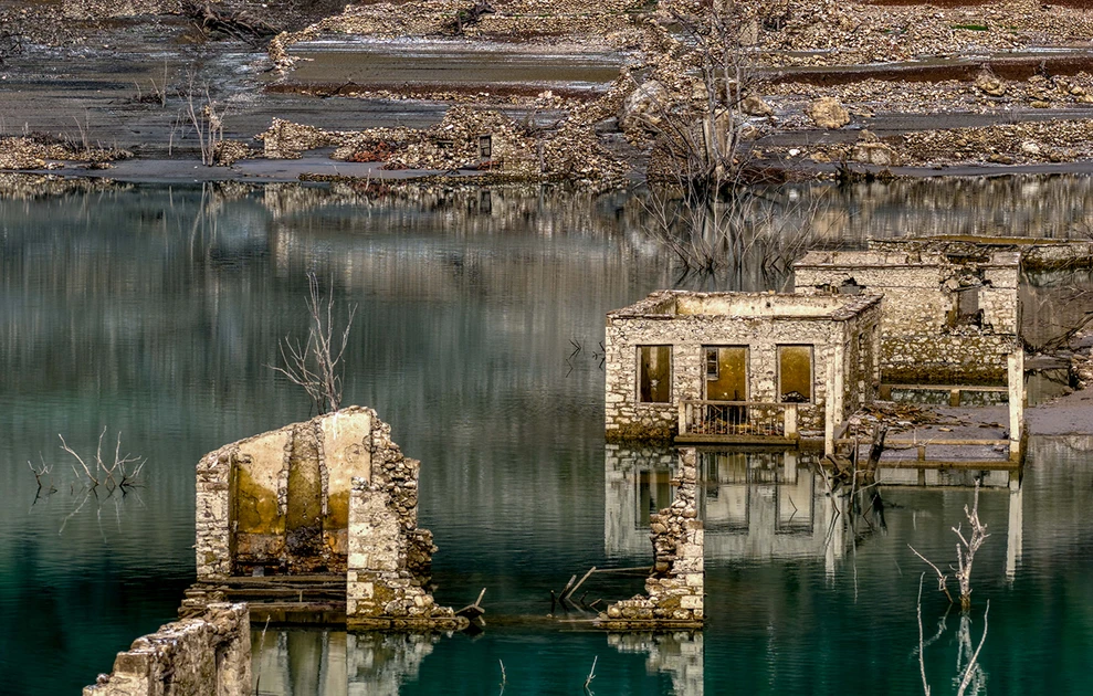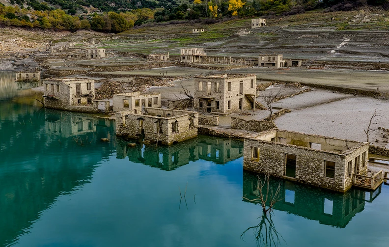 Η δραματική υποχώρηση της στάθμης έφερε ξανά στην επιφάνεια λοιπόν, το βυθισμένο χωριό Κάλλιο, εικόνα που παραπέμπει στη μεγάλη περίοδο ξηρασίας στις αρχές της δεκαετίας του ’90.