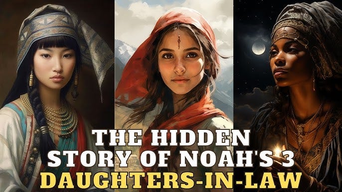 Δεν αναφέρονται μέχρι το Γένεση 6:18, το οποίο έρχεται μετά τη δήλωση του εδαφίου 12 ότι «κάθε σάρκα» διαφθάρηκε. Το εδάφιο 18 έρχεται μετά το εδάφιο 12. Όλα εννοούν τα πάντα. Σύμφωνα με τον Ιάσερ, οι γιοι του Νώε δεν επέλεξαν τις γυναίκες τους μέχρι επτά ημέρες πριν από τον κατακλυσμό. Την ίδια μέρα πέθανε ο Μαθουσάλα. Μια κηδεία και τρεις γάμοι ενώ άρχισε να πέφτει η βροχή. Αν αυτές οι γυναίκες ήταν γενετικά αγνές εξαρχής, γιατί να περιμένουμε μέχρι το τελευταίο δυνατό δευτερόλεπτο;