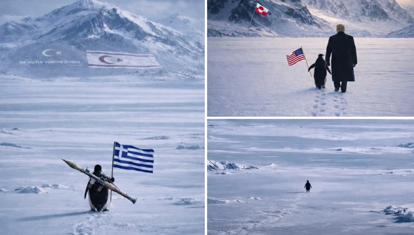 Στον απόηχο της συζήτησης για Γροιλανδία, ο Λευκός Οίκος εκμεταλλεύτηκε το viral βίντεο και έδωσε στη δημοσιότητα μια εικόνα τεχνητής νοημοσύνης, στην οποία ο Τραμπ εμφανίζεται να βαδίζει προς μια χιονισμένη οροσειρά, πλάι σε έναν πιγκουίνο οδηγώντας τον ουσιαστικά στο «πεπρωμένο» του με ασφάλεια. Στην εικόνα, ο πιγκουίνος απεικονίζεται να κρατά την αμερικανική σημαία, ενώ στο φόντο, πάνω στα βουνά, διακρίνεται η σημαία της Γροιλανδίας. Όλα συνδέονται με το σύνθημα «Embrace The Penguin».