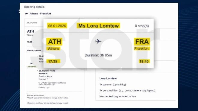 Στο επίκεντρο της έρευνας βρέθηκε από την αρχή το αεροπορικό εισιτήριο στο όνομά της. Σύμφωνα με τα στοιχεία, η πτήση αναχώρησε από το αεροδρόμιο «Ελευθέριος Βενιζέλος» στις 17:35 και προσγειώθηκε στη Φρανκφούρτη τρεις ώρες και πέντε λεπτά αργότερα. Παρά το εισιτήριο, δεν έχει ακόμη επιβεβαιωθεί επισήμως αν η Λόρα επιβιβάστηκε στο αεροπλάνο.