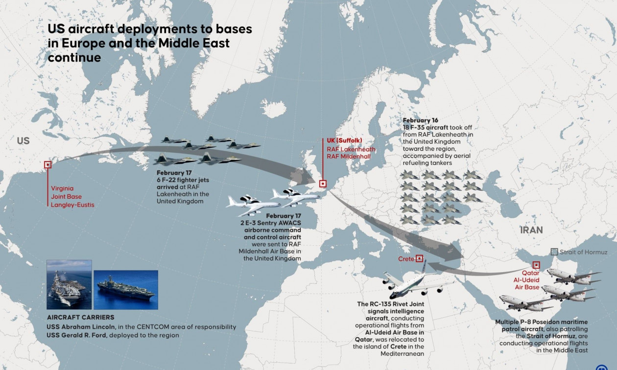 Πιστεύουν ότι η τρέχουσα κατάσταση θυμίζει τις προετοιμασίες για την εισβολή στο Ιράκ το 2003 και ξεπερνά την πρόσφατη ανάπτυξη δυνάμεων στην Καραϊβική πριν από την επιχείρηση στη Βενεζουέλα. Την προηγούμενη μέρα, ο Ντόναλντ Τραμπ δήλωσε ότι «πολύ άσχημα πράγματα» θα μπορούσαν να συμβούν εάν η Τεχεράνη αποσυρθεί από τη συμφωνία.