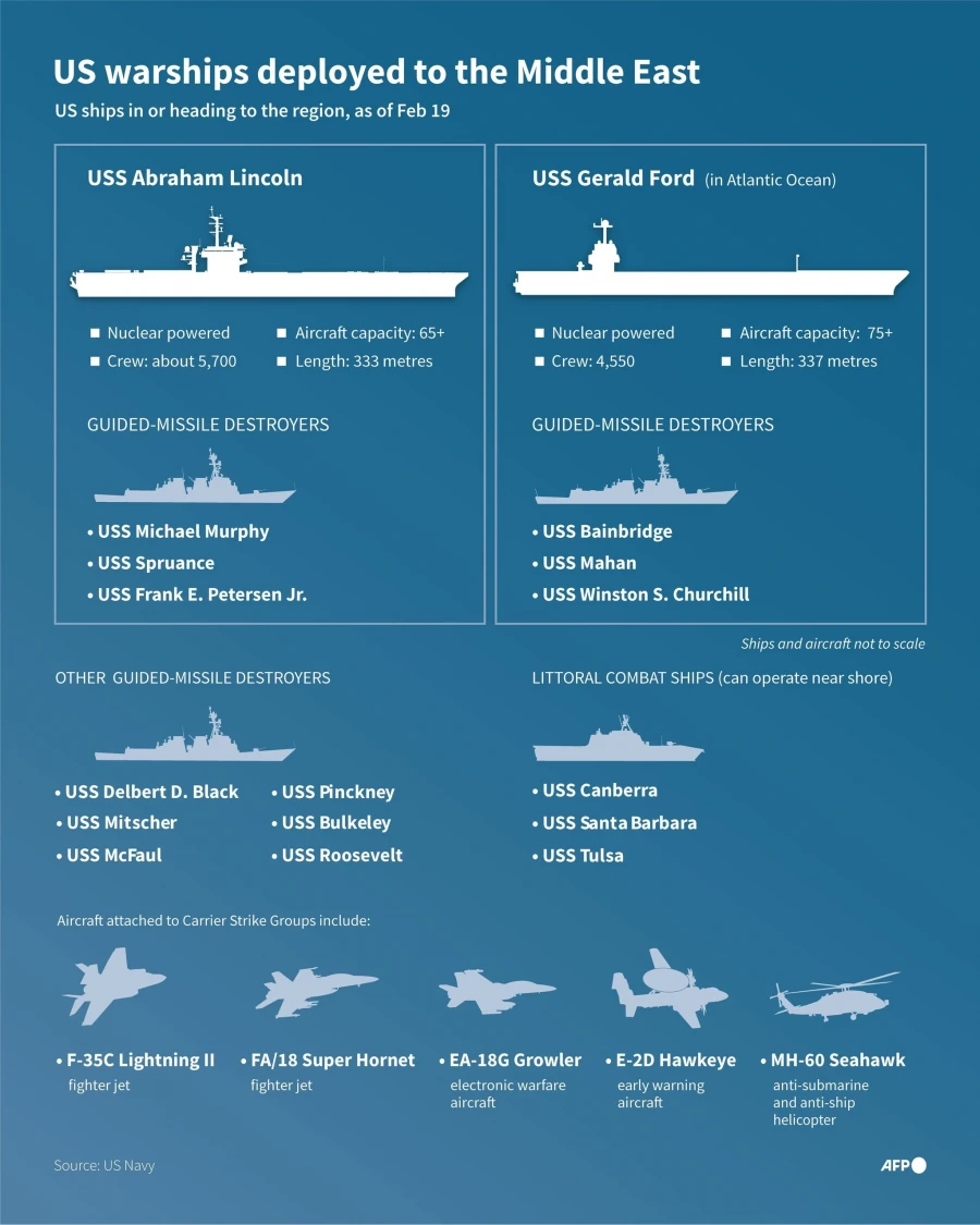 Επίσης οι Financial Times αναφέρουν υψηλή πιθανότητα μιας αμερικανικής επιχείρησης εναντίον του Ιράν. Η κλίμακα και η ταχύτητα της στρατιωτικής συσσώρευσης των ΗΠΑ στη Μέση Ανατολή υποδηλώνουν αυξημένη πιθανότητα μιας επιχείρησης κατά του Ιράν, αναφέρουν οι Financial Times, επικαλούμενοι πρώην αξιωματούχους του Πενταγώνου και ειδικούς εθνικής ασφάλειας.